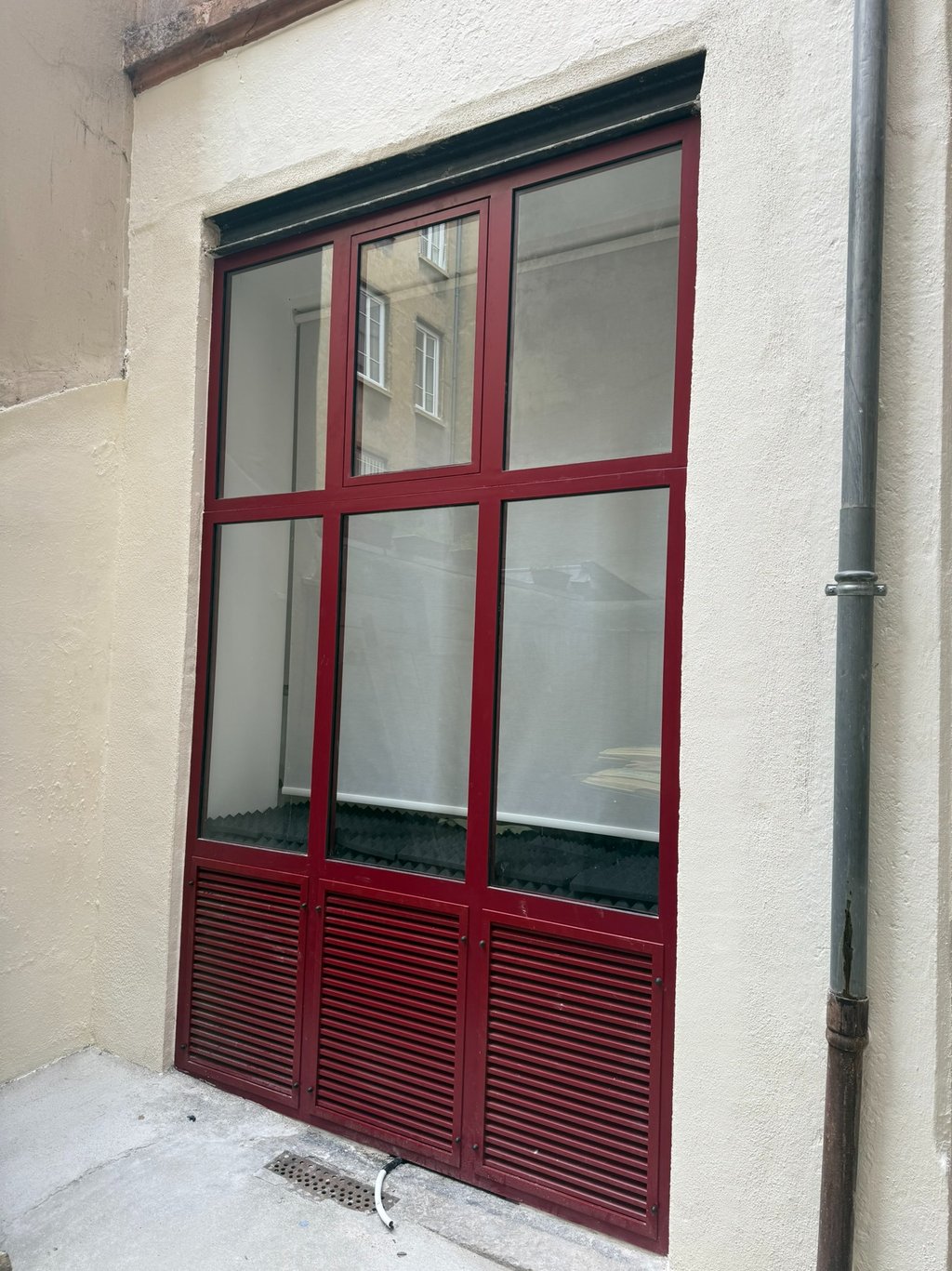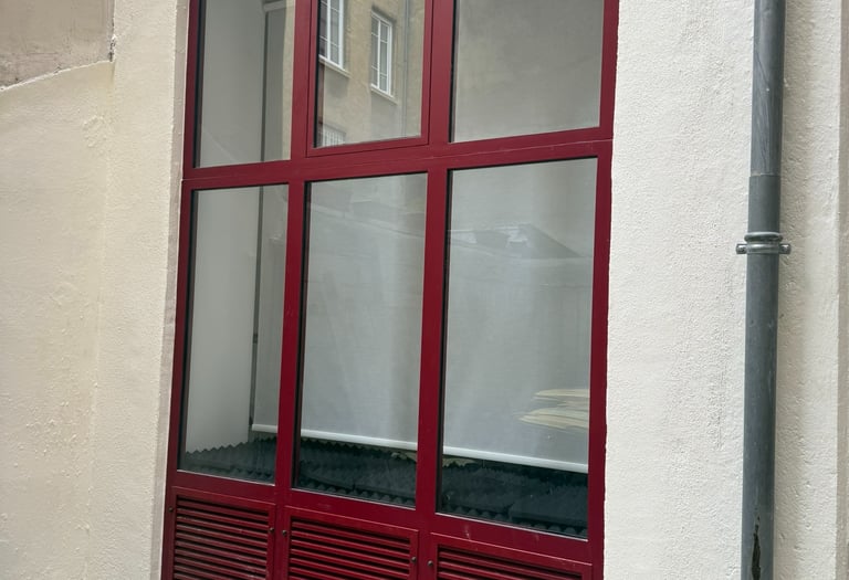 Grilles à ventelles intégrées : Pour assurer le bon fonctionnement du groupe de climatisation tout en préservant l'esthétique de la façade, nous avons intégré des grilles à ventelles directement dans le châssis en acier.