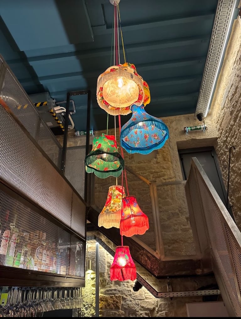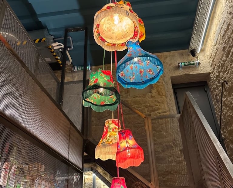 Décoration murale unique, alliant métal brut et jeux de lumière.