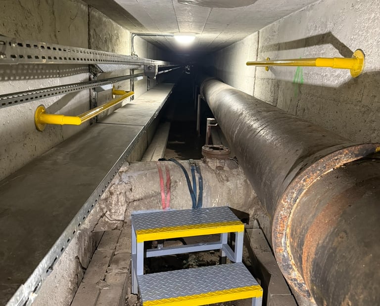 Notre mission consistait à remettre aux normes et à sécuriser l'ensemble des circulations techniques pour les agents de maintenance.