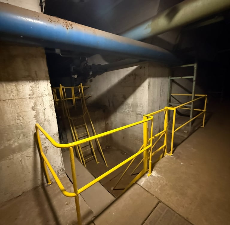 Échelles d'accès sécurisées : Des structures robustes permettant une descente en toute sécurité dans les zones de maintenance.
