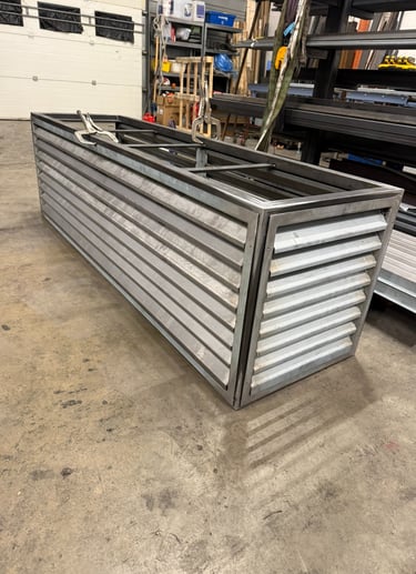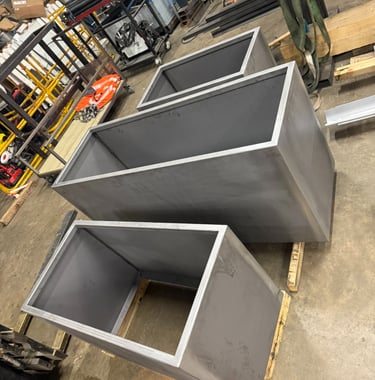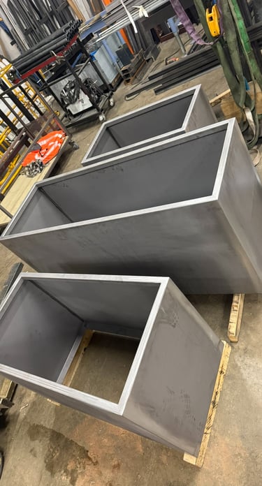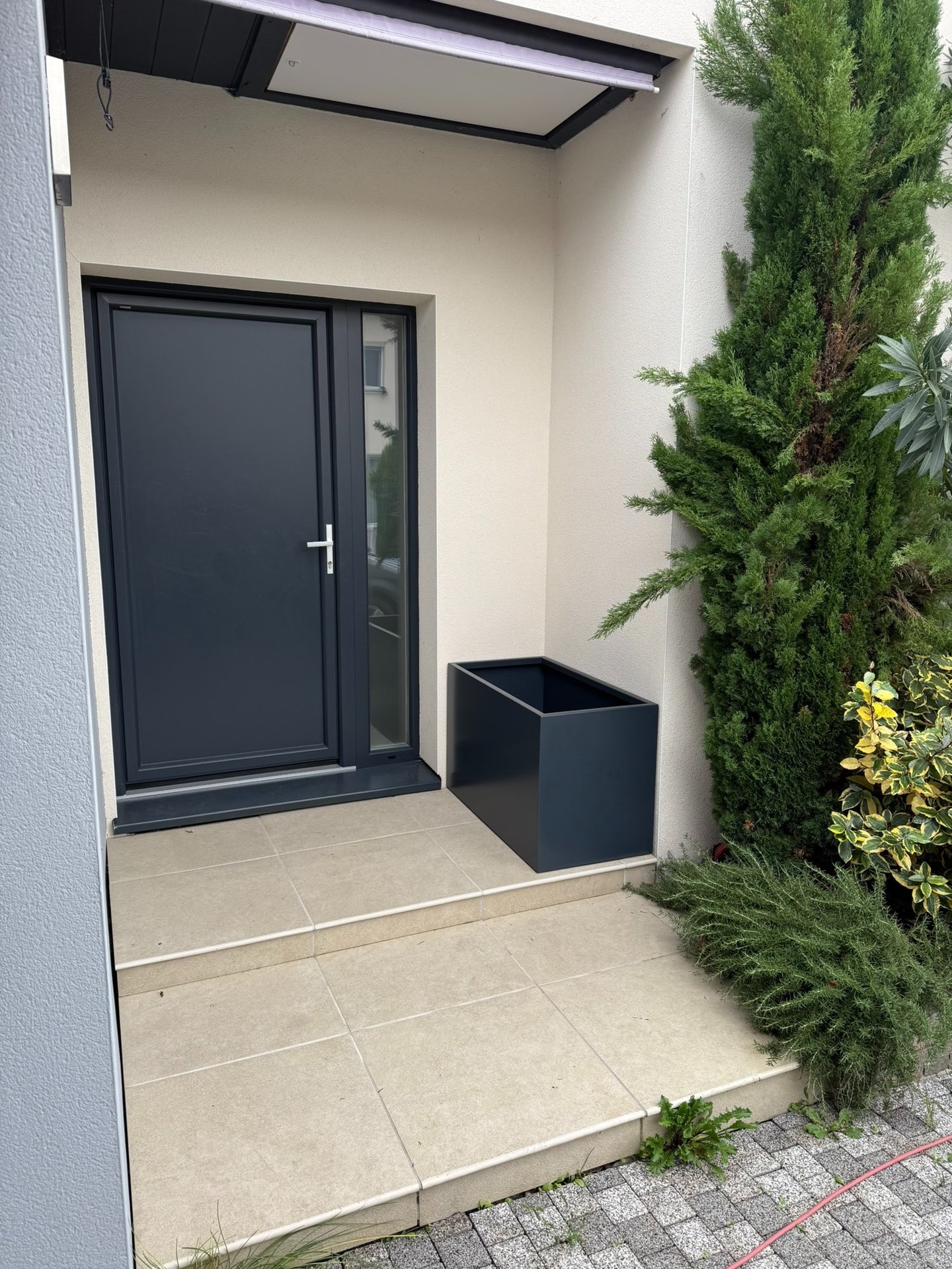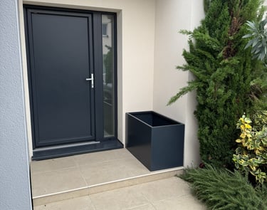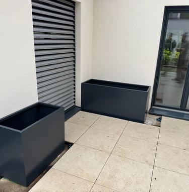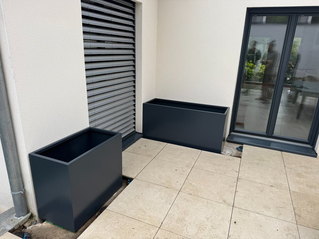 Nous avons conçu et fabriqué 3 jardinières sur mesure en acier, apportant une touche industrielle et végétale à cet espace extérieur.